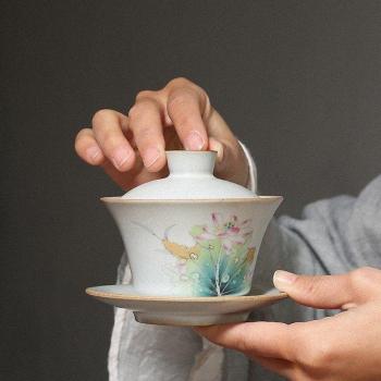 PINNY 140ML Antike Tee Schüssel aus Keramik, Kung Fu Gaiwan mit Blumenmotiven