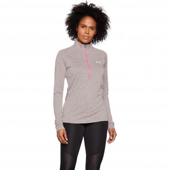 Under Armour Damen Tech 1/2 Zip-Twist Oberteil, Ghost Gray/Radio Red/Metallic Silver