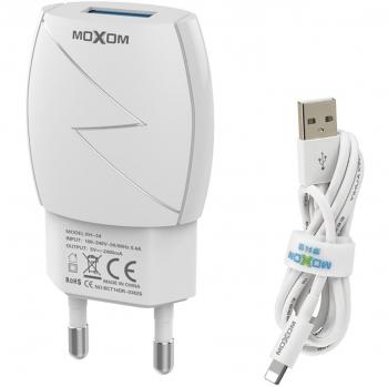 MOXOM 12W 5V / 2.4A USB Ladegerät mit Lightning Kabel für Smartphones