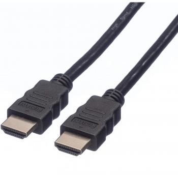 Ein langes, schwarzes HDMI‑Kabel von 50 m nutzt aktive optische Technik, um 4K bei 60 Hz ohne Signalverlust zu übertragen. Beide männlichen Stecker sind robust und unterstützen Ethernet für Netzwerkfunktionen.
