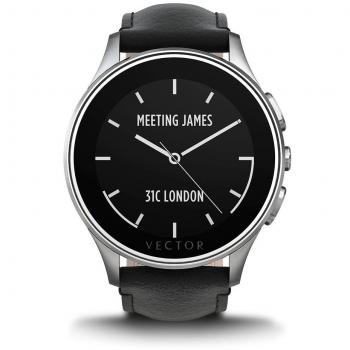 Smartwatch Luna Vector L1‑10‑015 – 46 mm, edles Edelstahl, schwarzes Lederarmband