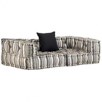 VidaXL Sofa‑Pouf 2‑Sitzer, modular, grauer gestreifter Stoff