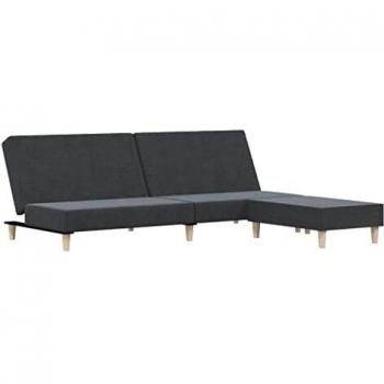 Schlafsofa Doppelbett mit Hocker – Dunkelgrau Stoffoptik