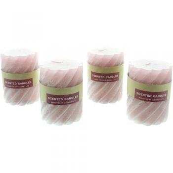 Dekoleidenschaft Stumpenkerze "Gedreht" aus Wachs in creme / rose, Ø 7x10 cm, 4-tlg. Set