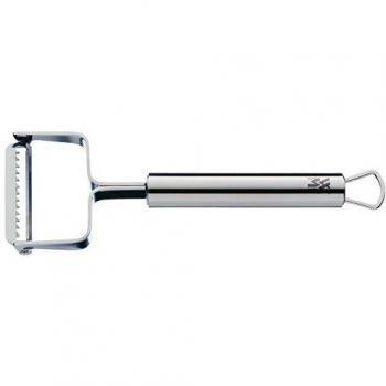 Der WMF Profi Plus Sparschäler aus Cromargan‑Edelstahl schält Gemüse dünn, ohne Reste zu hinterlassen. Die 17‑cm Klinge bleibt stets scharf, das teilmattierte Finish wirkt modern und die mitgelieferte Aufhängeschlaufe erleichtert die Aufbewahrung. Spülmaschinenfest für müheloses Waschen.