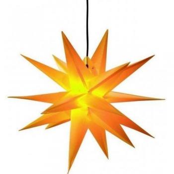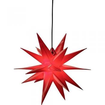 Ein leichter, weißer Außenstern von HGD mit 18 scharfen Zacken, der dank seiner robusten Kunststoffkonstruktion ohne Schrauben im Garten oder Balkon platziert werden kann und bei starkem Wind stabil bleibt.