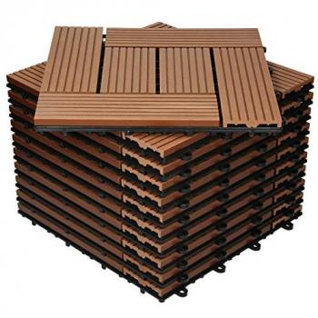 ECD GERMANY Baldosas Patio WPC 30x30 cm 33 Piezas 3m² Madera Mosaico Marrón Claro Drenaje Clic