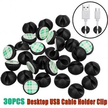 30 Uds Clips fijos para cables USB de escritorio