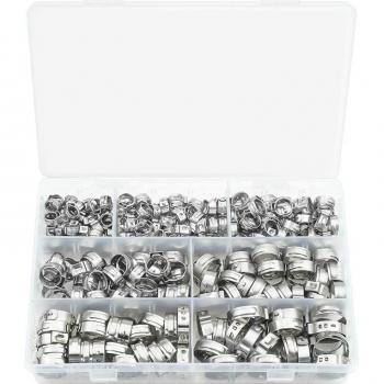 Abrazadera de manguera para oreja simple de acero inoxidable, 80 Uds abrazadera de manguera de crimpado de 6-23,6mm Kit de surtido anillos de cincha continua de oreja Ajuste de pellizco de crimpado