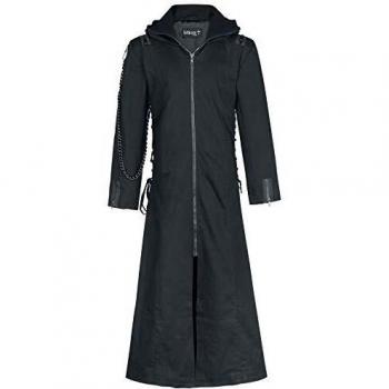 Abrigo negro corto en talla XXL con solapa elegante y cierre sencillo, fabricado en algodón suave que brinda calidez ligera; su corte recto y ajuste amplio combina estilo urbano con comodidad diaria.