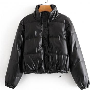 Fandy Lokar-Parkas con cuello levantado para mujer, abrigos negros a la , chaquetas de algodón cortas de cuero PU elegantes para mujer