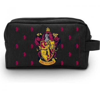 Bolsa de aseo con temática Hogwarts que combina elegancia oscura y practicidad; tejido negro resistente, cierre a presión y compartimentos internos para organizar cosméticos y artículos de higiene.