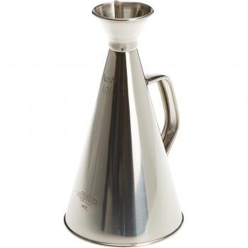 Aceitera de acero inoxidable con capacidad de 750 ml que evita derrames gracias a su tapa anti-goteo; su acabado plateado y diseño compacto la hacen ideal para servir aceite en cualquier cocina sin complicaciones.