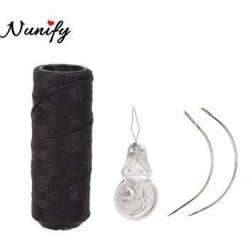 Rollo de hilo de pelo negro y marrón con 12 agujas para pelucas
