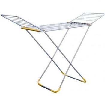 Tendedero compacto de acero plastificado con alas plegables que se despliegan, ofrece 18 metros de cuerda en gris y un diseño abierto de 103x55x179 cm, ideal para secar ropa al aire libre sin ocupar mucho espacio.