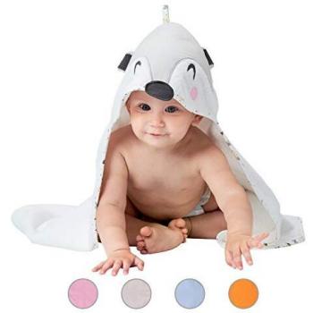 Albornoz para bebé con capucha de zorro - Toalla de baño 100% algodón ecológico, certificado Oeko Tex, sin productos químicos - 70x70cm, 0-12 meses - Gris