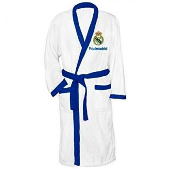 Albornoz Real Madrid T6‑8 confeccionado con algodón ligero, presenta una capucha acolchada y un escudo bordado en el pecho; su cintura elástica y bolsillos laterales ofrecen comodidad y practicidad tras la ducha o al descansar en casa.