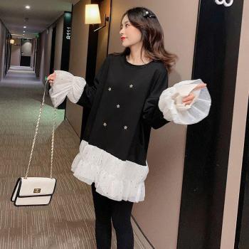 Manga Larga Camiseta de Algodón Maternidad: Suelta, Invernal y Bordada con Estrellas