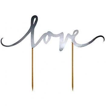 Palillo para tarta "Love" plateado - Decoración de fiesta