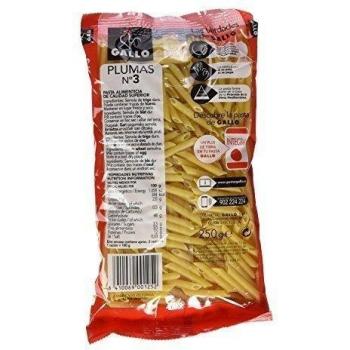 Gallo - Pasta Plumas No.3 - 250 Grs Pack de 8