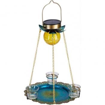 Alimentador Solar para pájaros, bandeja colgante de Metal, alimentadores de aves salvajes para exteriores, alimentador de luz alimentada por energía Solar para jardín, cadena para atraer pájaros