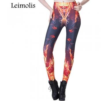 Pantalones Leggings de Fitness 3D para Mujeres con Estilo Gótico de Fuego y Esqueleto, Alta Cintura y Talla Grande