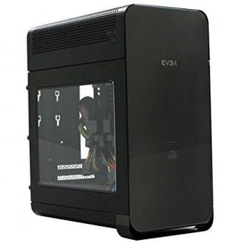 Caja midi‑tower blanca con ventana lateral que expone luces LED azules; admite placas ATX y Micro‑ATX, dos bahías de 3,5 " y una de 2,5 ", ventilador frontal y trasero de 120 mm, USB 3.0 y entrada audio.