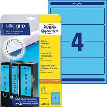 Etiquetas de impresora Avery para carpetas, azul 192 x 61mm