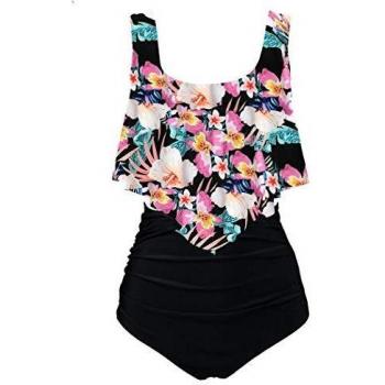 Bikini Aidotop para Mujer con Volantes y Cintura Alta (3Black Flower, M)