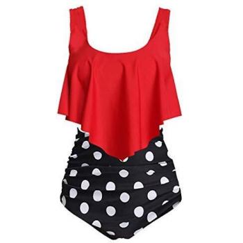 Bikini Sets Aidotop para Mujer con Top de Volantes y Cintura Alta (13Red Point, S)