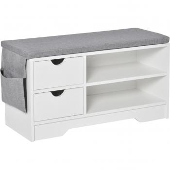 Banco Zapatero Craig Homcom 2 Cajones + Estante 80,5x30,5x43,5 cm Blanco/Gris