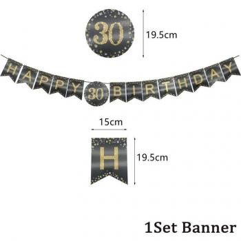Guarnición de Felicidad: Set de Banderines Negros y Oro 30, 40, 50, 60 años