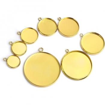 Bandejas de camafeo en blanco con base dorada, acero inoxidable, 20 piezas, diámetros 10/12/14/16/20mm, material para fabricación de joyas DIY