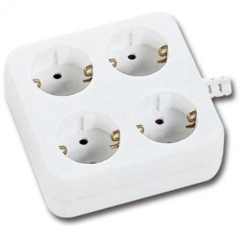 Regleta de ocho tomas con interruptor en plata, cable de 2,5 m y protección contra sobretensiones; ideal para oficinas o hogares, permite controlar el suministro eléctrico de varios dispositivos simultáneamente.