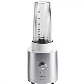 Con su motor AC de 300 vatios y un diseño negro compacto, esta batidora personal ZWILLING transforma frutas, verduras e hielo en mezclas cremosas al instante. El vaso de vidrio resistente mantiene la frescura mientras la tapa hermética evita derrames durante el proceso.
