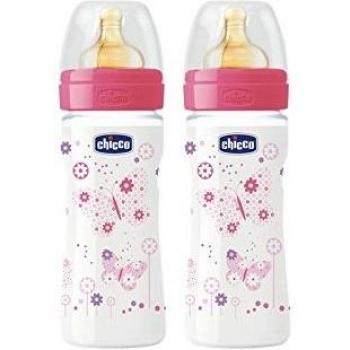 Chicco Wellbeing - Biberón de vidrio con tetina de látex y flujo normal 240 ml