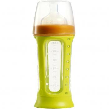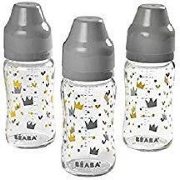 Beaba - Set de 3 biberones de vidrio 240 ml - Color gris/neón