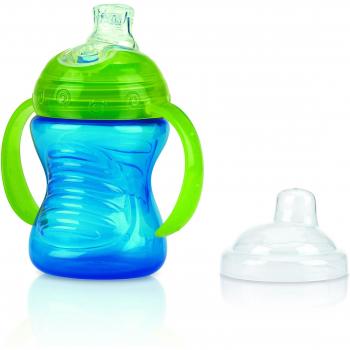 Nuby Blue Sip 295 ml – Taza con Asas, Boquilla de Silicona y Tapa Protectora