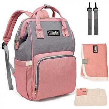 Verolino Mochila para Bebés (Rosa Gris + Ganchos + Cambiador)