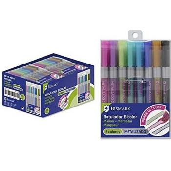 Estuche 8 rotuladores doble linea plata + neon-pastel Bismark