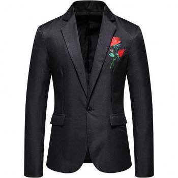 Blazer de un solo botón para hombre, chaqueta de traje informal con bordado rosa, MWX047