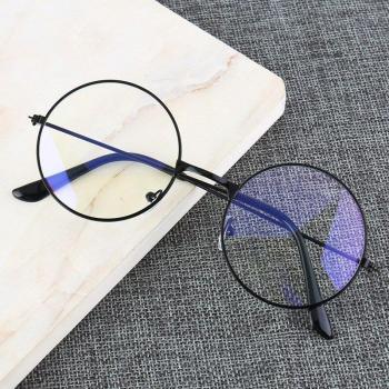 Estilo Universitario Marco Metal Circular con Bloqueo Azul