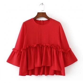 Blusa Neploe de Mujer, Estilo Europeo, Primavera Verano, Con Volantes y Retales, Manga Tres Cuartos, 66896
