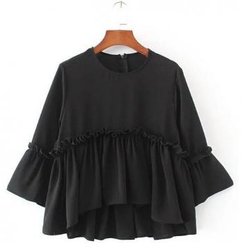 Blusa de Mujer Neploe con Volantes y Retales, Estilo Europeo, Primavera Verano, Manga Tres Cuartos 66896