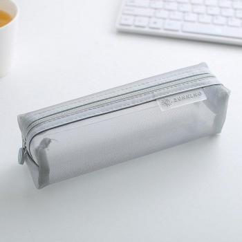 Caja de lápices de malla para la escuela, estuches Kawaii de Color sólido transparente, suministros para estudiantes, bolsa de almacenamiento de papelería de lapislázuli 05170