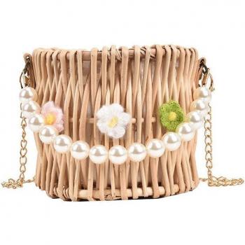 Bolso de paja de mimbre para mujer, Bolsa de playa de verano, tejido sólido con forma de cubo, bolso bolsas de mimbre a la # BL1