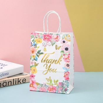 Bolsa de papel Kraft de agradecimiento para cumpleaños, bolso portátil