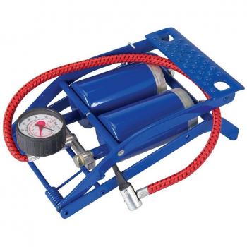 Bomba de pie de cilindro único 280 cm³ que combina robustez y ergonomía, perfecta para inflar neumáticos de coche o bicicleta con rapidez; su manómetro integrado muestra presión hasta 7 bar sin complicaciones.