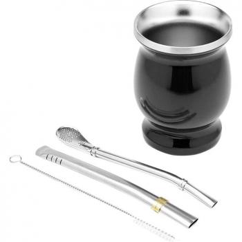 Juego de taza de yerba mate de acero inoxidable con cuchara y cepillo