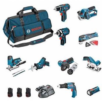 Amoladora angular Bosch GWS 12V‑76, motor de 19500 rpm y disco de 76 mm, ideal para cortes y lijado sin cables. Viene con dos baterías de 2,5 Ah, cargador rápido y caja L‑BOXX para organizar accesorios.